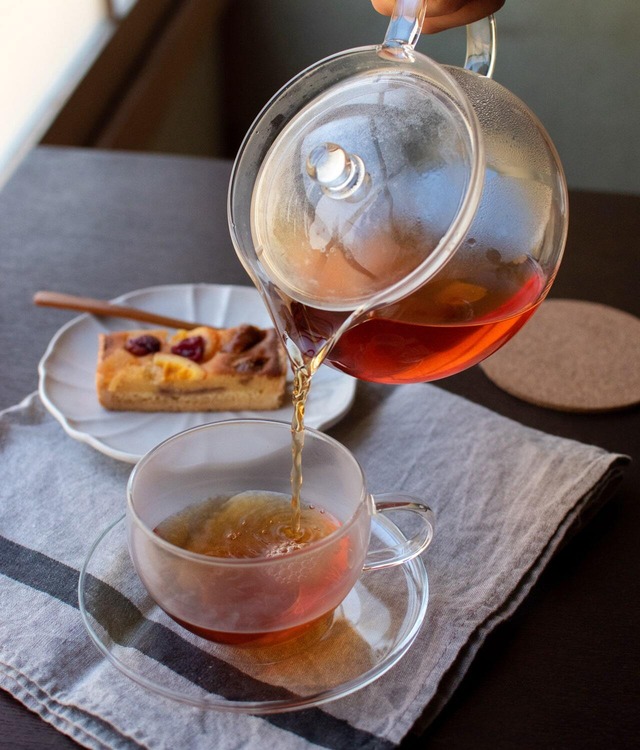 ・煎茶:4g ・湯量:100ml ❶ 急須またはティーポットに茶葉を入れ、熱湯をやさしく注ぎ、3分ほど待ちます。 ❷ カップに、最後の一滴まで注ぎます。